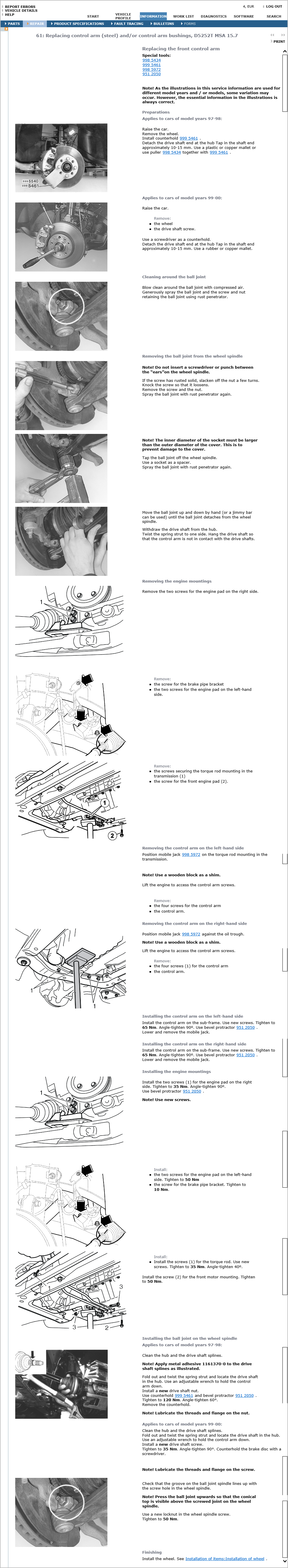 Replacing control arm (steel) and/or control arm bushings, D5252T MSA 15.7